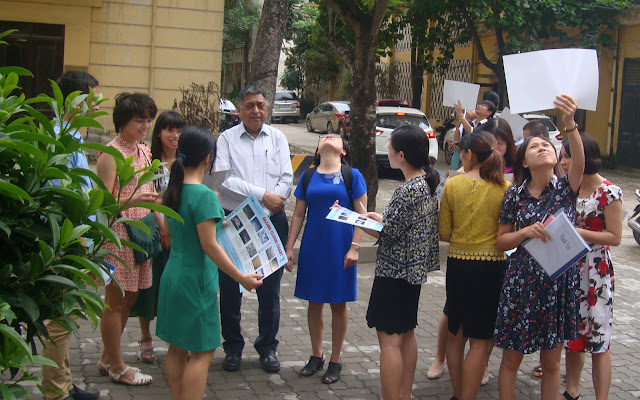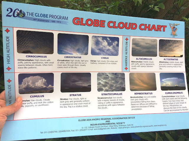 Các giáo viên thực hành quan sát mây theo sự hướng dẫn của giảng viên R.K.Garg trong chủ đề Khí quyển. Những nội dung này cũng sẽ được các giáo viên hướng dẫn lại cho học sinh khi chương trình GLOBE được triển khai ở nhà trường.