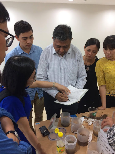 Giảng viên Desh Bandhu cùng các giáo viên tiến hành thí nghiệm đo độ pH của đất.